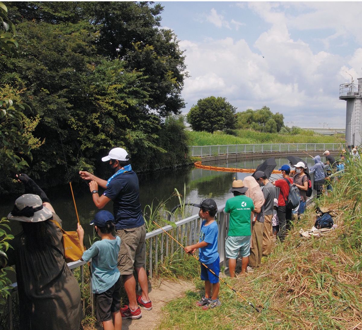 子どもたちに自然体験の場をつくる「かわさき水辺の楽校」が7月24日、二ヶ領用水の宿河原取水口付近で魚釣りイベントを開催した。親子ら約40人が参加し、夏休みのひと時を楽しんだ。