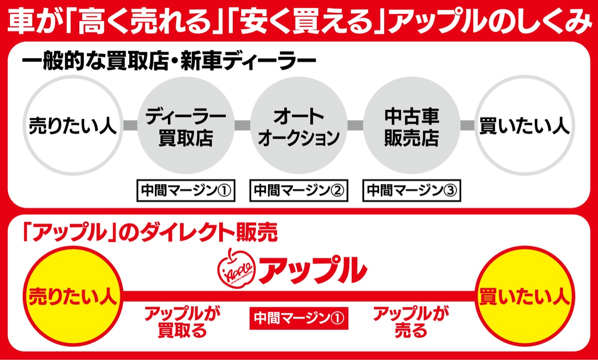アップルは中間業者のいない「ダイレクト販売」で余計な中間マージンが発生せず、高価買取と安心価格を実現。買取は見積無料、スタッフが丁寧に対応してくれる。販売では新車から輸入中古車まで、さまざまな車種や価格帯がそろう。「店頭に並ぶお車だけでなく、お取り寄せも可能です。お話を伺って提案させていただきます」と河井店長。検温・消毒など感染症対策も万全。まずはお電話を。