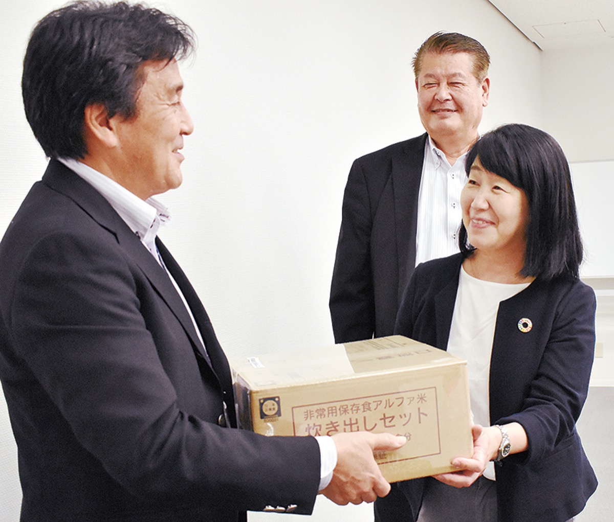 「試食会などを行い、実際に食べてみる機会をいただいた。災害に備える意識が高まった」と奥村副会長。同事業場の中山紳一さんは「私たちの資源が地域の役に立てばうれしい。社内にまだアルファ米はあるので、随時提供していきたい」と話した。