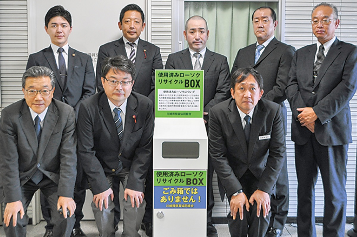 市内の葬祭業者らが加盟する川崎葬祭具協同組合(齋藤隆理事長)は先月、かわさき南部斎苑(川崎区)と、かわさき北部斎苑(高津区)に使用済みろうそくの回収箱を設置した。