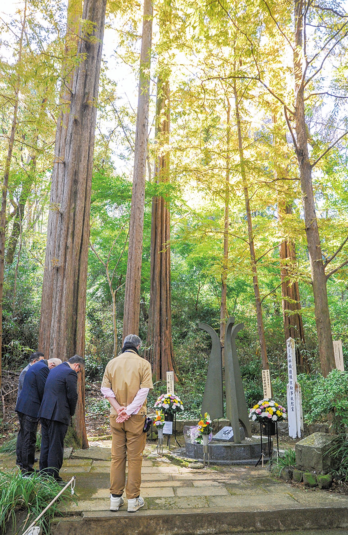 午前、岡本太郎美術館と生田緑地共同事業体、同園整備事務所の職員も献花し、黙とう。美術館の古内久副館長は「この自然の中でかつてあった犠牲が今、多くの安全な土地開発に生かされている。静かに受け継いでいきたい」と語った。