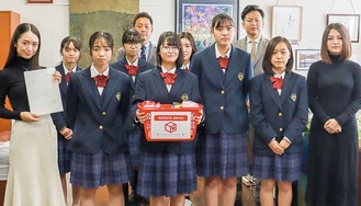経済的理由などで生理用品を入手できない「生理の貧困」。生理用ナプキンの寄付を通して川崎市立高校5校の生徒を支援している団体・レッドボックスジャパン(尾熊栞奈代表)へ今月10日、市立橘高校(中原区)の生徒7人が代表して礼状を手渡した。
