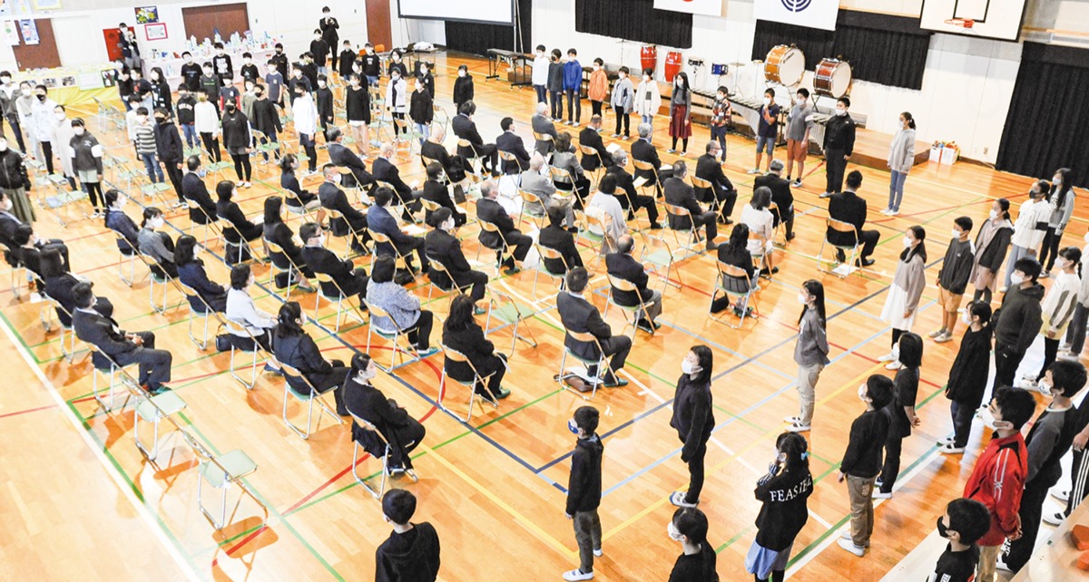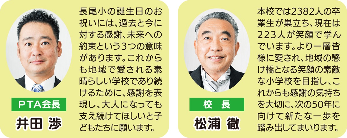式典をはじめ記念事業は、現役・歴代PTA役員や教員らによる実行委員会が進行に従事。飼育池の循環器やビオトープ整備、校庭遊具整備のほか、児童主体によるスロープ壁画制作や水道タイル画制作、植栽整備などが行われた。実行委員長の高橋晃さん=人物風土記で紹介=は「この式典が子どもたちの心に残り、いい思い出になればうれしい」と語った。