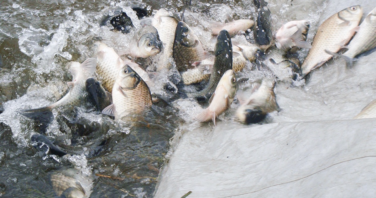 川崎河川漁業協同組合(竹仲密昭組合長)は11月21日、二ヶ領上河原堰近くの多摩川にヘラブナ400キロ・約1000匹を放流した。