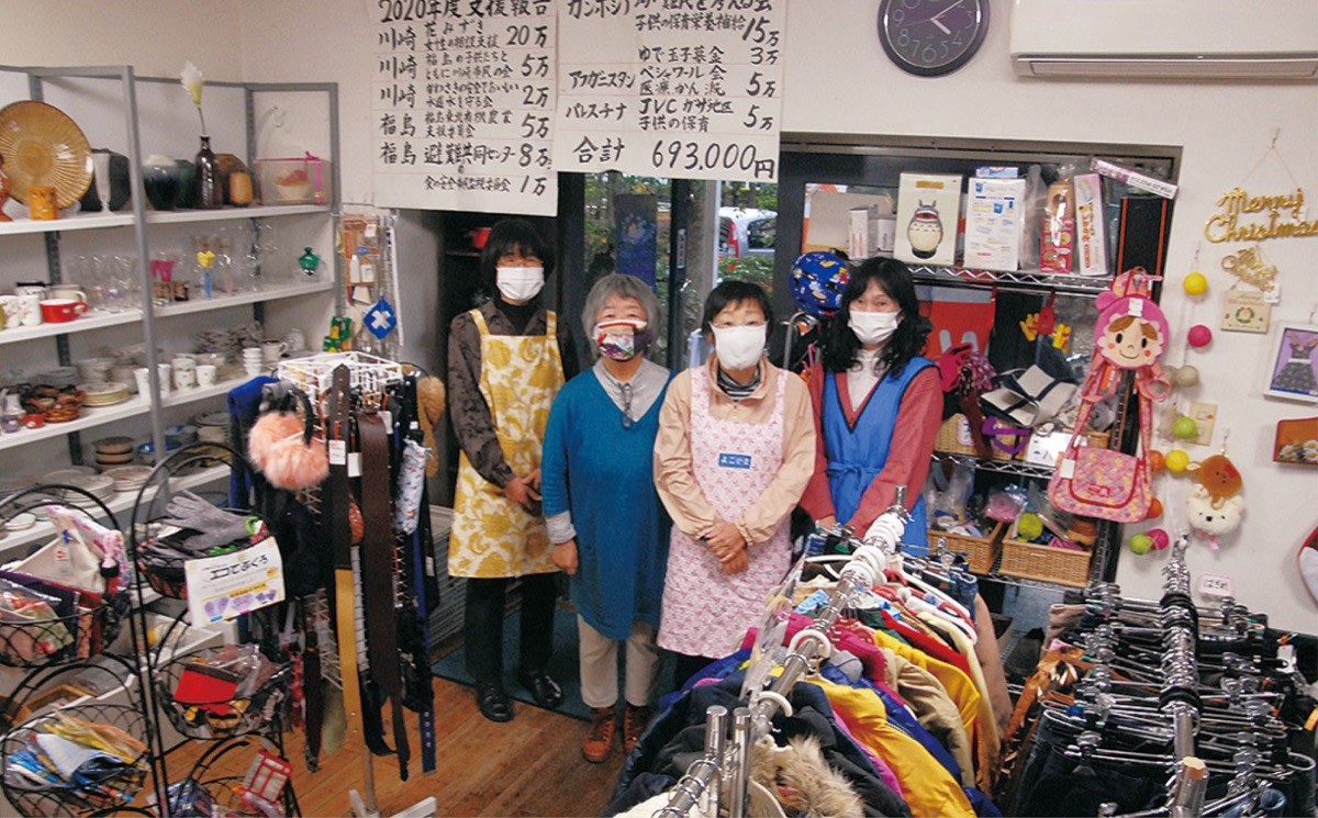 コロナ禍では休業や短縮営業の影響を受けてきたが、昨年度は1096件の寄付品が寄せられ、3262人が来店。その収益を基にカンボジアの「幼い難民を考える会」や、女性の自立支援を行う「花みずき」など、約10カ所に70万円ほどの支援を行った。法人代表を務める鈴木久子さん=人物風土記で紹介=は「羽毛の回収など、資源の再利用や環境問題のことをもう少し考えていきたい」と展望を語った。