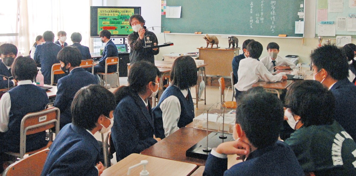 市内教員に向けた報告で同校は、積極的な地域の「人財」活用の有効性を提示。研究主任の矢坂健太郎教諭は「社会に開かれた教育課程であることを教員間で共有し、学校から発信していく。各分野に精通するプロを招くとき、私たちも生徒に教えるプロであることを自覚して関わることが必要」と呼びかけた。