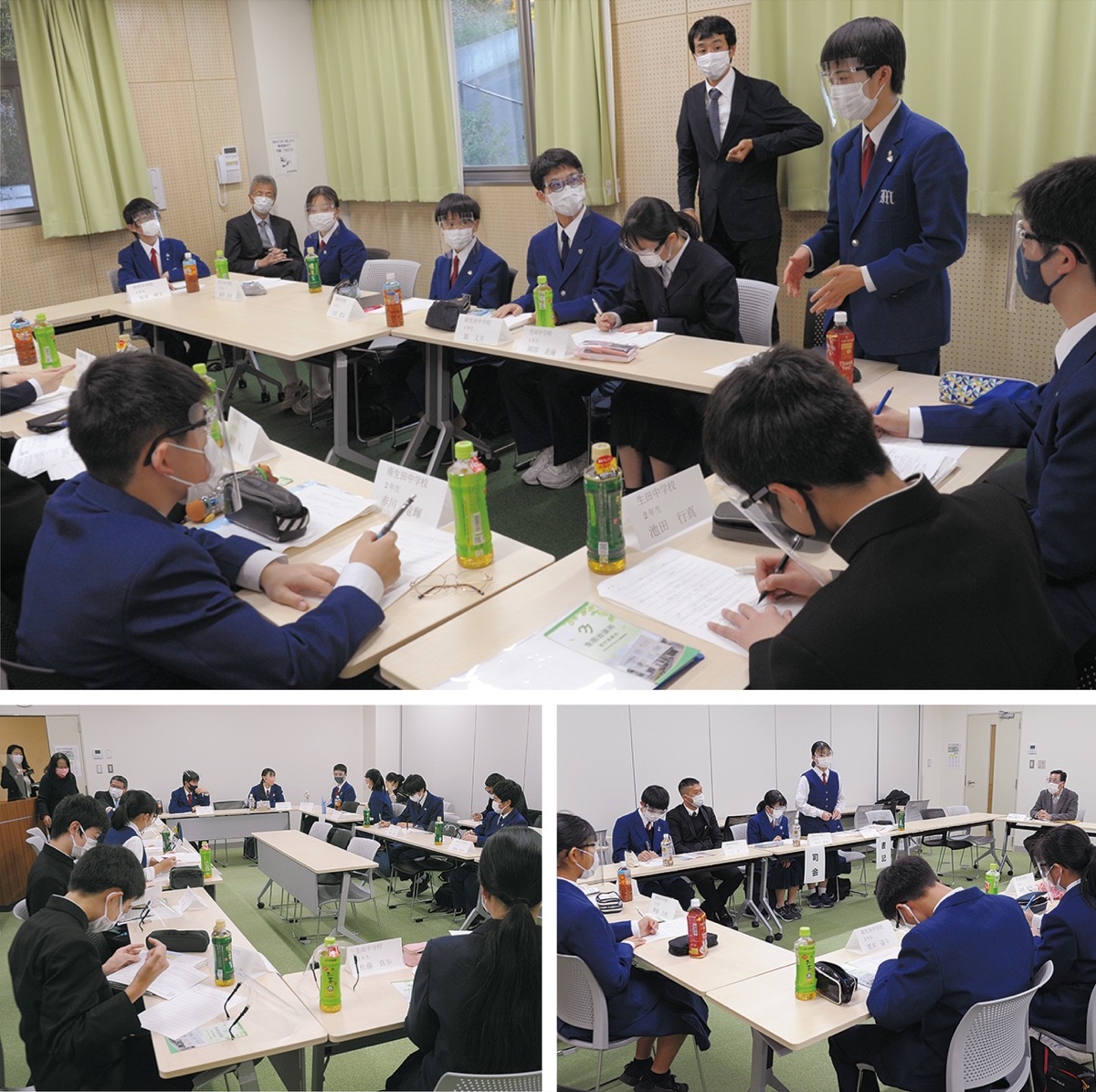 テーマを毎年設定し、各校の生徒代表がグループ討論する取り組みで、37人が参加。昨年はコロナの影響で初のオンライン形式となったが、2年ぶりに対面で実現した。生徒たちは3グループに分かれ、大矢浩司部長ら青少年福祉部のメンバーや各校の校長、教員も加わって実施。今年のテーマ「コロナ禍で学んだこと これから出来ることは? 〜地域を見守ろう〜」について、意見を出し合った。