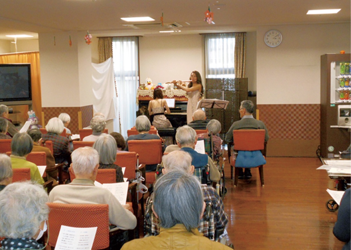 自分だけの空間でくつろげる居室は、床暖房や洗面・トイレの人感センサー付照明、ケア・ナースコールなどを装備。細部にわたり機能性と安全性にこだわる。外食レクや近隣保育園との交流、コンサート、お花見など豊富なレクリエーションも充実の日々を彩る。