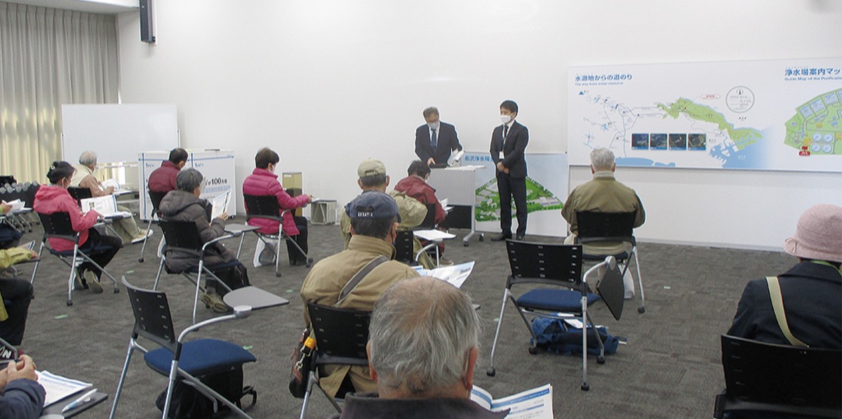 市民団体・かわさきの安全でおいしい水道水を守る会(町井弘明代表)が3月11日、長沢浄水場の見学会を行った。会員や地域住民20人が参加し、浄水場の災害対策について学んだ。