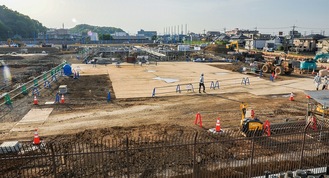 サッカーJ1・川崎フロンターレが生田浄水場用地に新設するスポーツ拠点「フロンタウン生田」。2023年3月の開業まで1年を切った。昨秋に着工し、今年3月には建築工事とグラウンド工事も予定通り開始。先月25日、同クラブと市上下水道局、地元団体らで編成する連絡協議会の6回目の会合が開かれ、進ちょくやスケジュールを確認した。