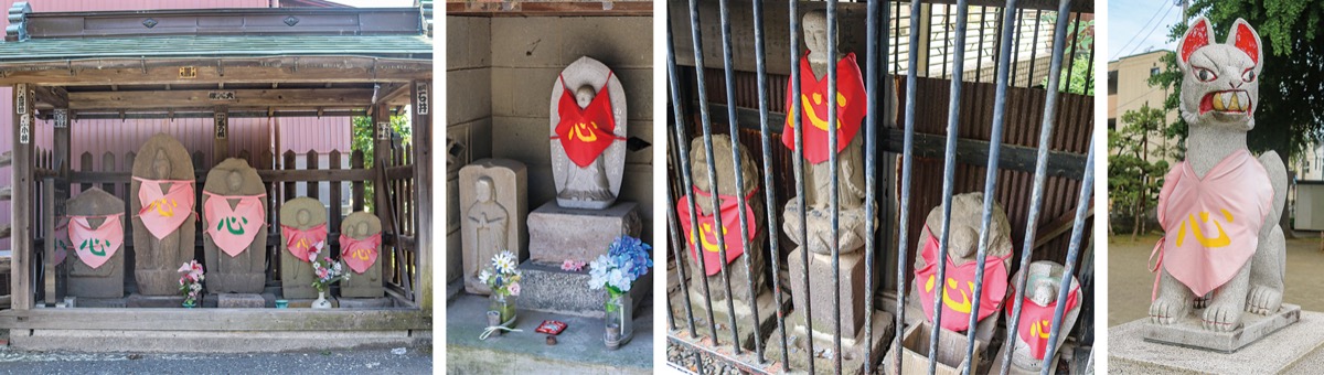宿河原や堰周辺に多くある地蔵の前掛けを製作、約10年にわたって毎年付け替えてきた人がいる。堰在住で仕立屋「テーラータナカ」を営む田中壽雄さん(85)だ。