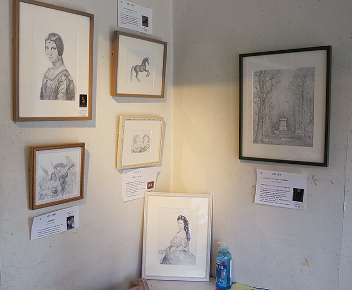 今回は8人の有志が描いた13作品が並ぶ。フィリッポ・リッピの作品『聖母子と二天使』を模写した小島明子さん(54/埼玉県在住)は「聖母の祈りの手を、コロナの終息を願いながら描いた」と振り返る。吉田さんは「同じ作品を模写したとしても、人それぞれ受け止め方が違う。それが作品に個性として表れるのが鉛筆画」と魅力を語った。展示は7月2日に始め、店内に置かれたノートには「鉛筆1本でこんなにも豊かな表現ができるのは驚き」など感想が書き込まれていた。