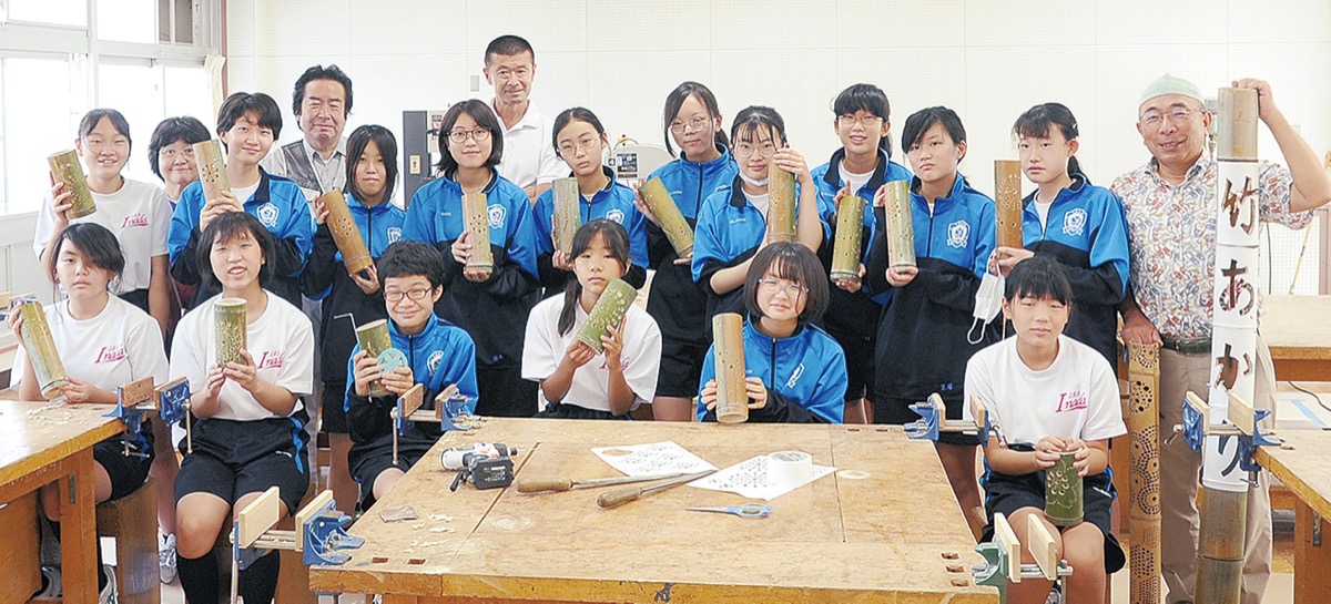 宿河原駅前商店会による竹明かりの企画も3年ぶり。七夕で使った竹を活用し、LEDライトで光を灯して約60本を会場周辺に並べる。7月19日と20日には、半数を稲田中美術部の生徒が制作。電気ドリルで竹に穴をあけ、花火などの柄を表現した。「皆で作ったものが並ぶところを見て、笑顔になってほしい」と3年生の木村麗心(うるみ)さん。同商店会の高橋利之会長は「どの店も営業しながら制作するのは大変。学校の力を借りて地域を盛り上げたい」と語った。同校の相沢宏明校長は「今後は地域教育会議として、小学生も巻き込んでいけたら」と展望を話した。