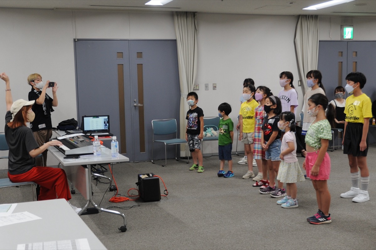 多摩区が募集した区制50周年公募事業企画の一つで、4歳から小学生の参加者が集結。この日はオリジナルの歌詞カードを使って歌を覚え、ダンスも練習した。コーラスの指導をした区内在住のボイストレーナー・HAHさんは「まずは大きな口で。お腹に力を入れてまっすぐ立って」と呼びかけ、歌うポイントを伝えた。