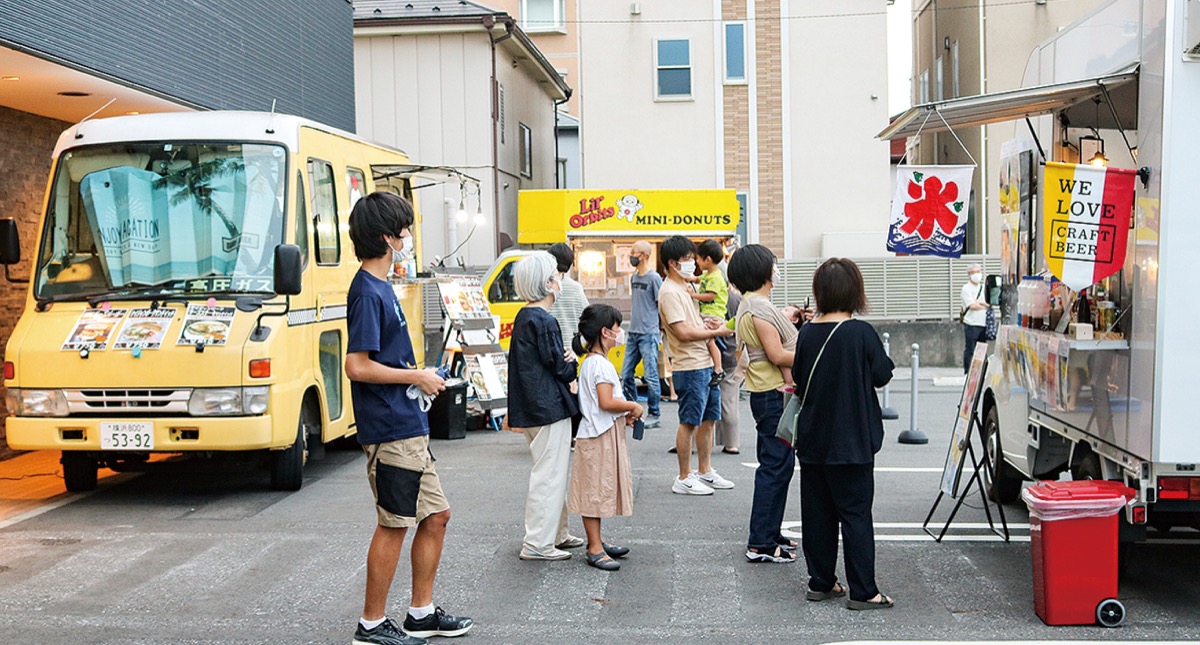 駐車場の空いているスペースを活用して地域を盛り上げたいと、中野島のパン屋「パントレプレナー」と昨年12月から開催しているマルシェ。パントレプレナー従業員の清水雄太さん(22)が、「中野島に飲食店が少ない」という声を多く聞いたことから考案した。毎月開催を続け、8カ月間で延べ約40台のキッチンカーが出店。実施頻度も増え、7月からは第1・3土曜日と毎週日曜日に開催している。