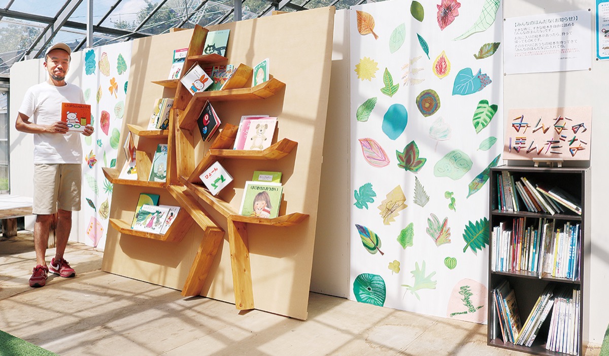 約100冊の絵本はこの1年でほとんど入れ替わっている。「住む地域で実践を考えていたとき、取り組みを快諾してくれた緑化センターに感謝。本をはじめ物が循環する社会、長く大切に使ってもらうことの意味を親子が話すきっかけにもなればうれしい」と岩崎さん。同センターを統括する菊地徹さんは「デザインも素敵。地域の人が集う場にもなるので、今後も継続してほしい」と期待を寄せた。