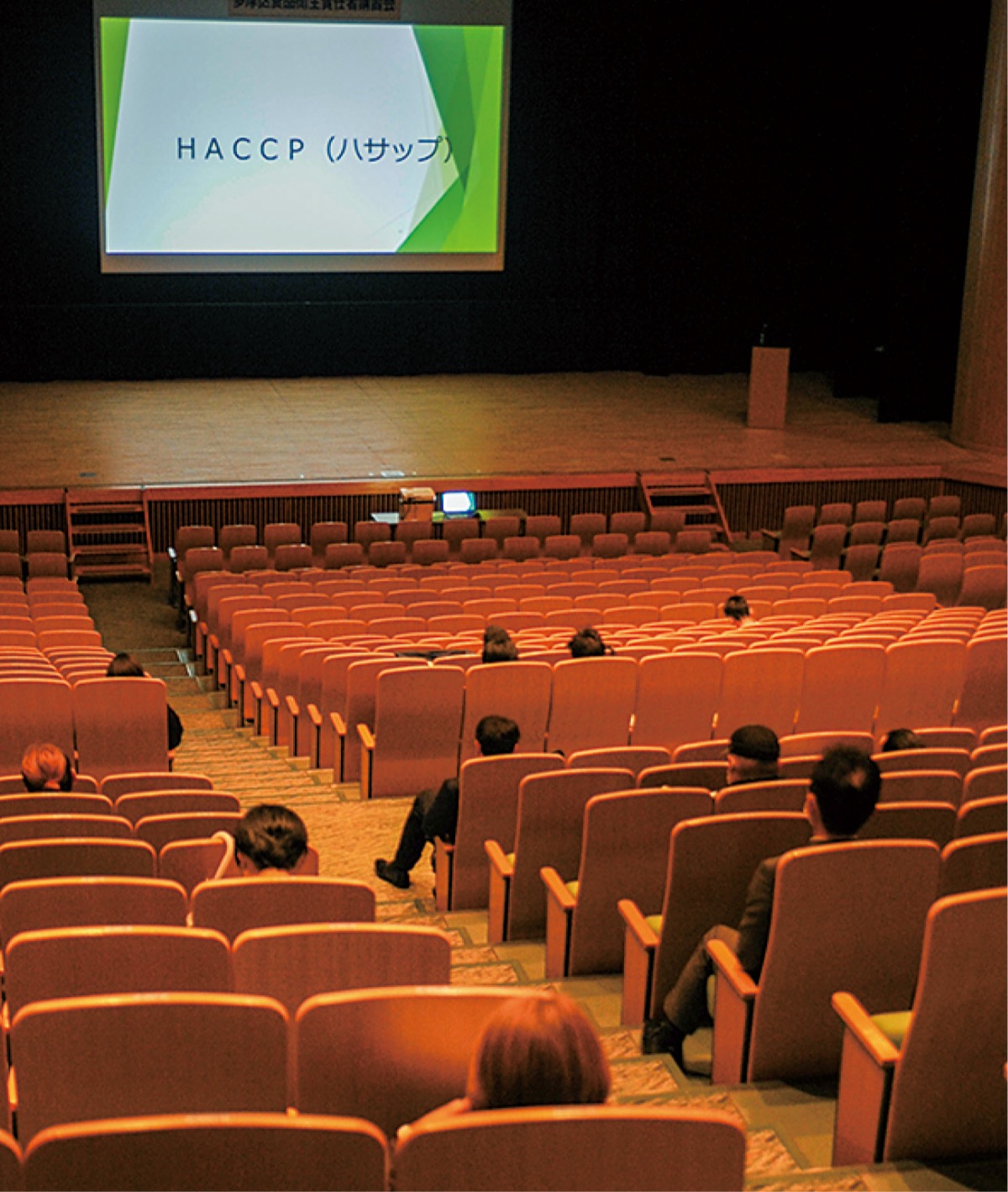 食品衛生責任者の役割や必要な知識を学ぶ場として、川崎市では区ごとに行われる実務講習会。コロナで3年ぶりとなった今回は、昨年6月に完全施行された改正食品衛生法に基づき、営業許可制度の見直しや食品等のリコール情報報告の義務化などをスライド上映で解説。特に、食中毒や異物混入を防ぐ衛生管理の手法「HACCP」(ハサップ)に沿った記録の義務化について詳しい説明があった。