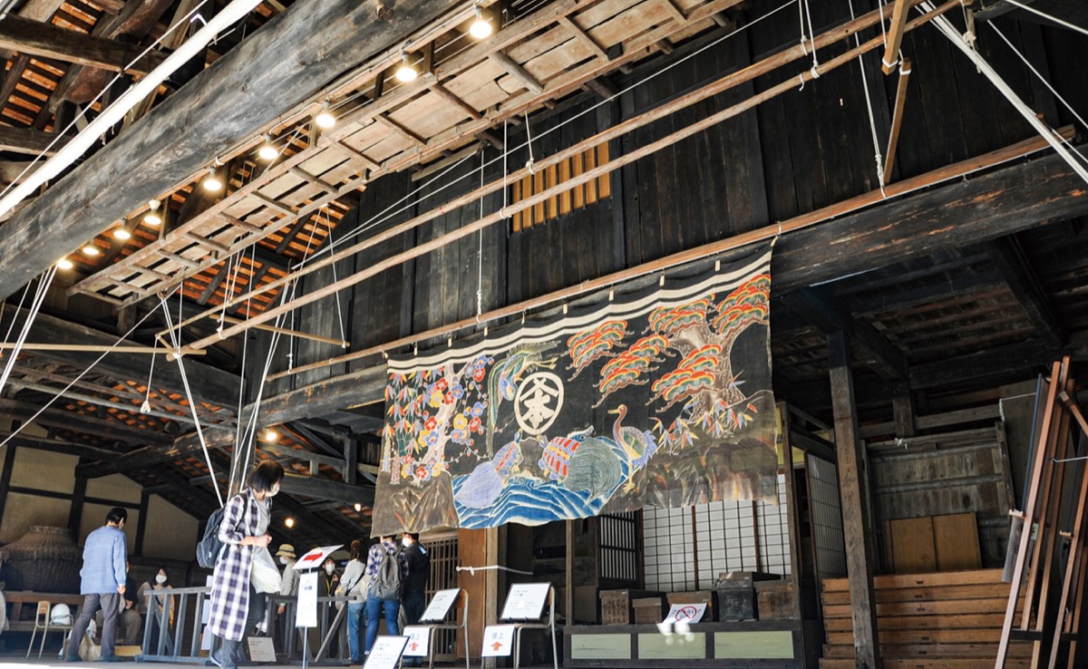 三重県の本格的な歌舞伎舞台で、国指定重要有形民俗文化財に指定されている同舞台。例年春と夏に行われていた内部公開はコロナ禍で見合わせているため、久しぶりの見学の機会となり、人数制限下で来園者の行列ができた。