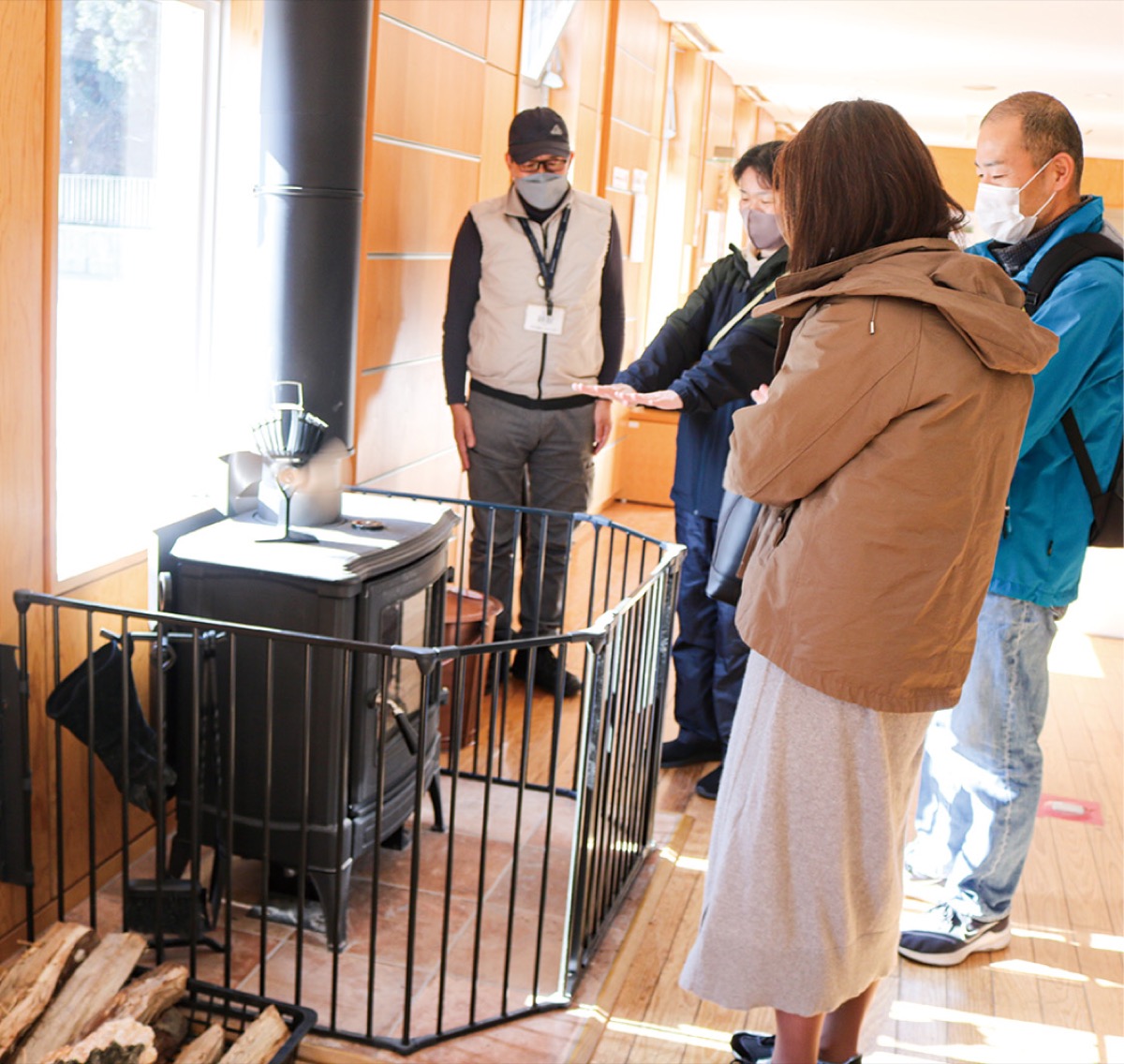 伐採した木の大半は緑地内の土に戻されるが、利活用の取り組みも始まっている。昨秋は伐採したコナラに市立川崎総合科学高校(幸区)の美術部が絵を描き展示。今月上旬には東口ビジターセンターに薪ストーブを設置し、伐採した木を使用している。生田緑地共同事業体の越智正夫さんは「炎の見える薪ストーブは珍しく、来園者にぬくもりを与えている」と意義を話す。