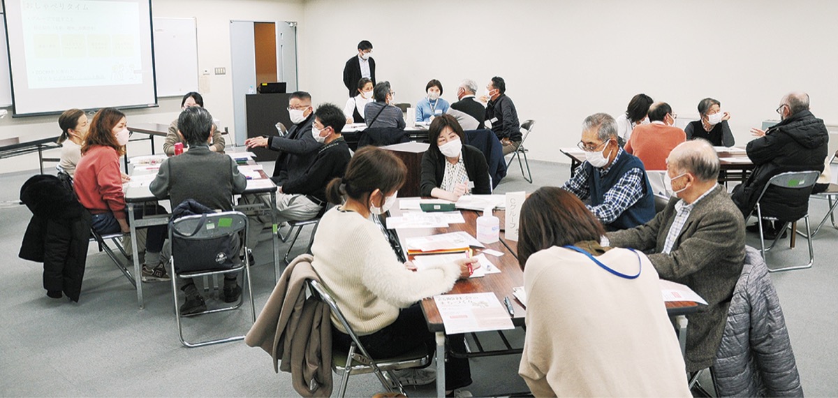 講演を踏まえたグループごとの話し合いでは、「小さく集まれる拠点がたくさんできれば」「活動に加入するきっかけが必要」といった意見も。登戸東本町会の古田茂会長は「多くの人たちがよくしていこうと考えていることが、今後も続いていくとうれしい」と話していた。