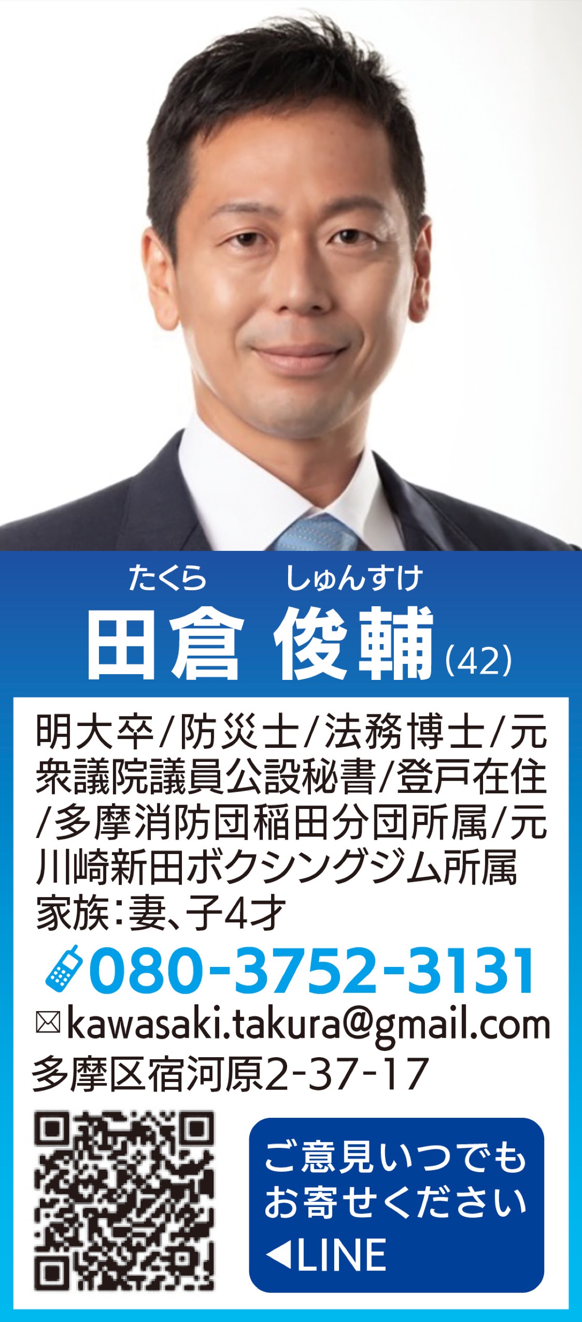 私は最後まで諦めずに川崎市、多摩区を「もっと良い街」にしたいです。皆様の政治に対するご要望、暮らしのお困り事を是非お寄せ下さい。