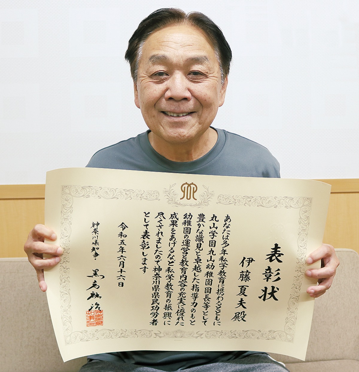 学校法人丸山学園認定こども園丸山幼稚園(登戸)の伊藤夏夫園長(68)がこのほど、県の最高表彰のひとつ「神奈川県県民功労者表彰」を受賞した。