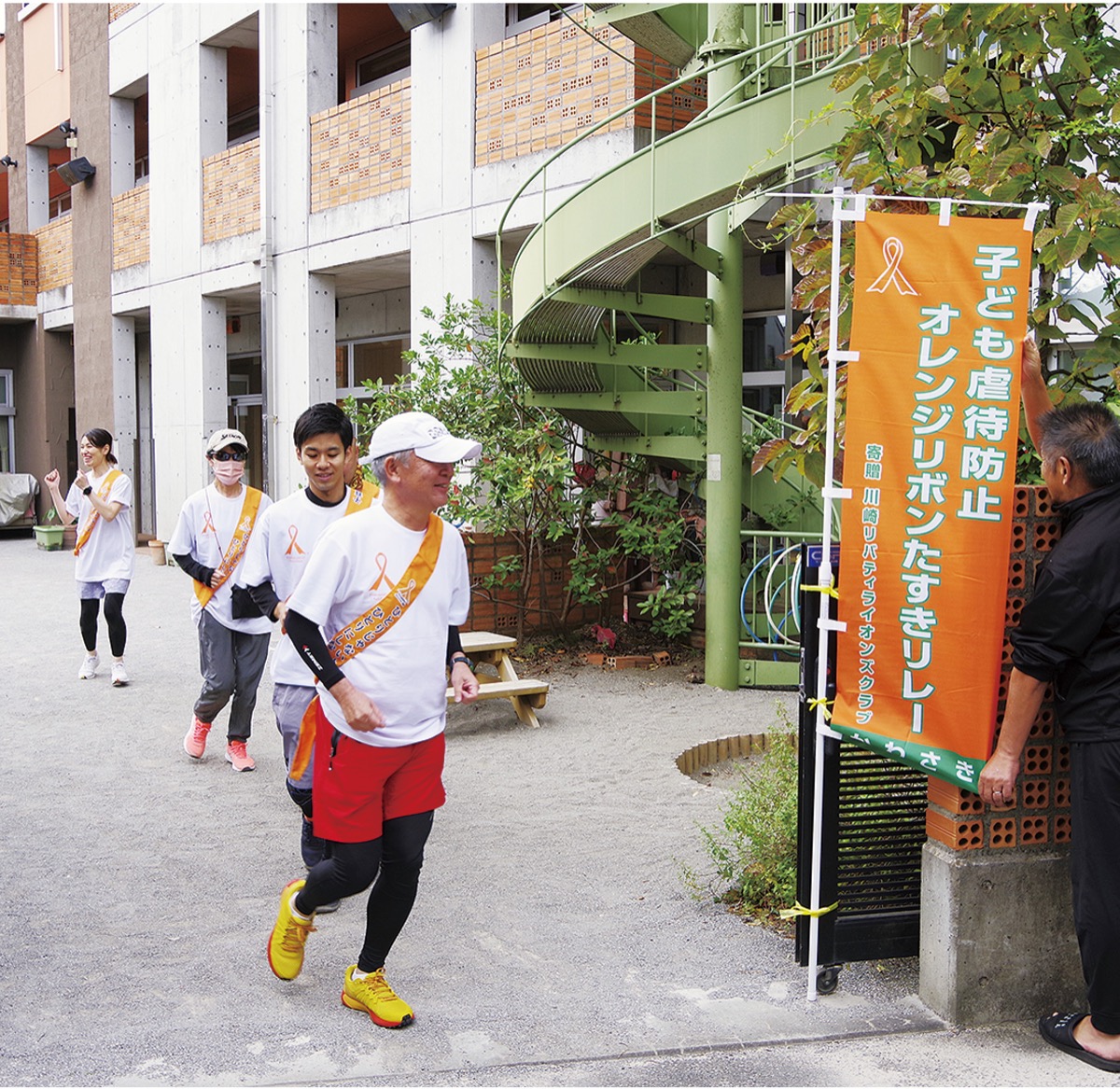 11月の児童虐待防止推進月間にあわせ、養護施設や団体の関係者らがオレンジ色のたすきをかけて駅伝形式でつなぐこの取り組み。2007年から東京と神奈川で始まり、16年に川崎コースを開設。今年も市内2ルートでランナーが虐待防止を呼び掛け力走した。