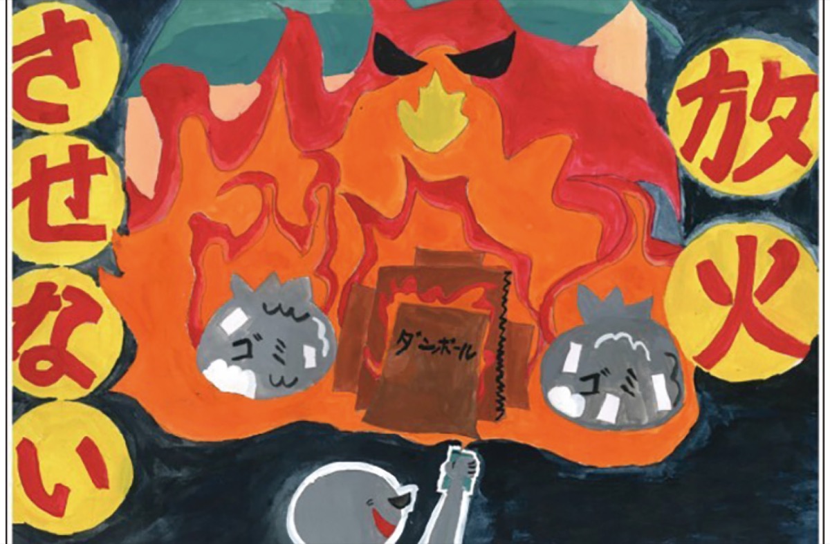 多摩消防署(村上治三郎署長)と多摩防火協会(岸井洋一会長)が火災予防の一環として、区内の小学校から募った防火ポスター。区内10校から48作品が集まり、下布田小学校の倉島実冬さん(6年)の作品が金賞を受賞した。