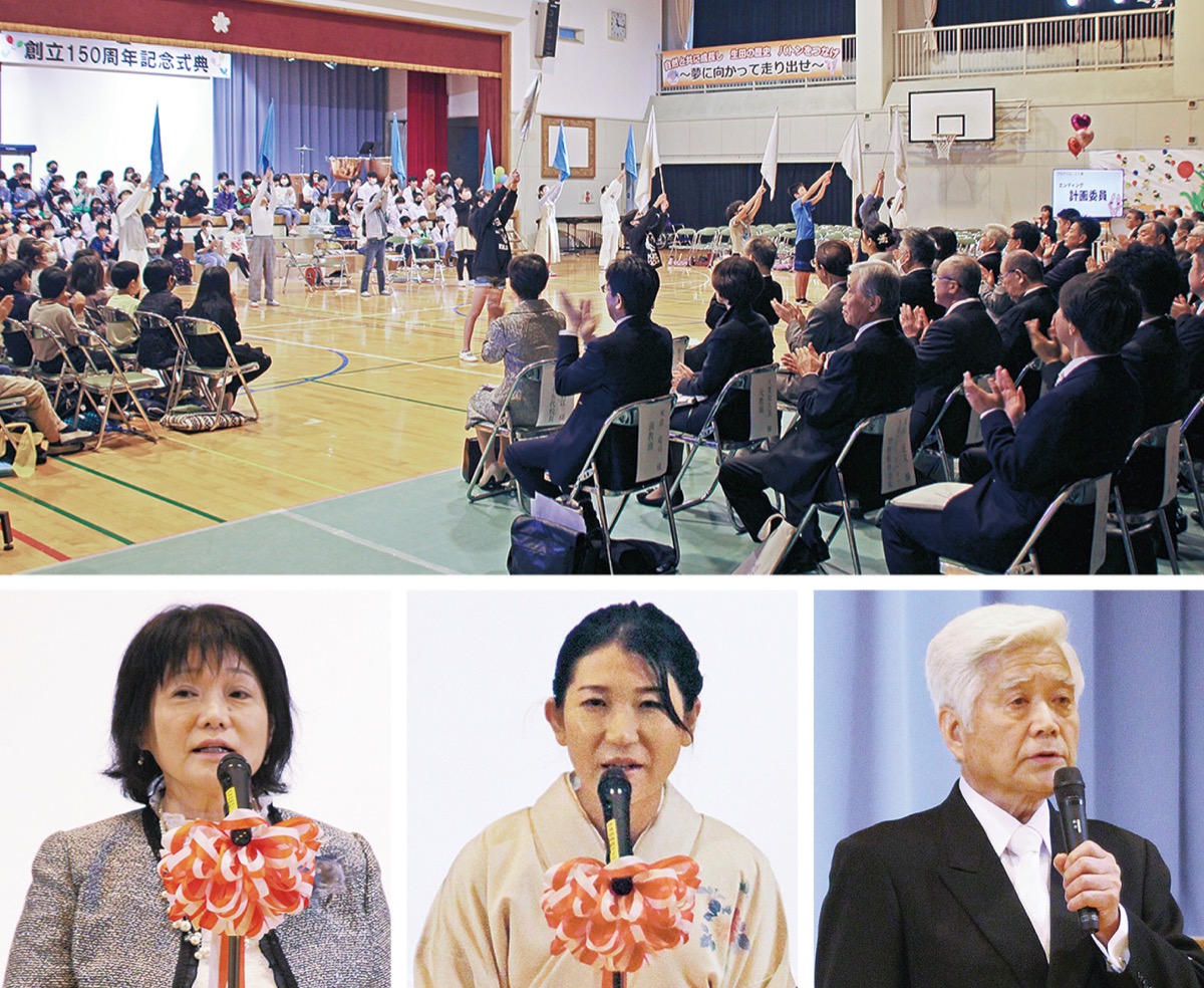 今年創立150周年を迎えた市立生田小学校(渡邊晴美校長)の記念式典が11月11日、同校体育館で開催された。児童や職員をはじめ、PTAや近隣の教育機関、商店会や自治会、地域団体の関係者らが集い、節目を祝った。
