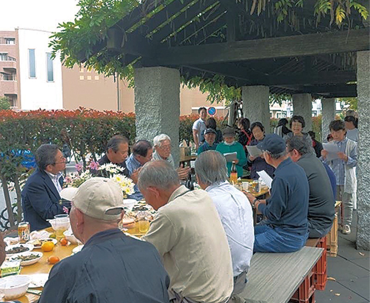 当日は、料理を作るメンバーが公園前の畑に午前9時に集まり準備を開始。里芋の皮をむき、洗って鍋に入れた。こんにゃくやきのこ、牛肉も追加、醤油の味付けをして完成させた。一方、公園では、テーブルや椅子を並べ、着々と準備を進めた。昼ごろから始まり、3時30分ごろまで交流を楽しむ姿が見られた。遠藤さんは「町会のみなさんは、声をかけると、喜んで手伝ってくれる。多くの人の協力があったからこそ、続けてこられた」と感謝を口にした。作田さんは「自分たちが企画するのはこれで終わり。『来年もやってほしい』という声も多い。少し寂しい気持ちもあるので、若い方々が引き継いでくれたらうれしい」と思いを語った。