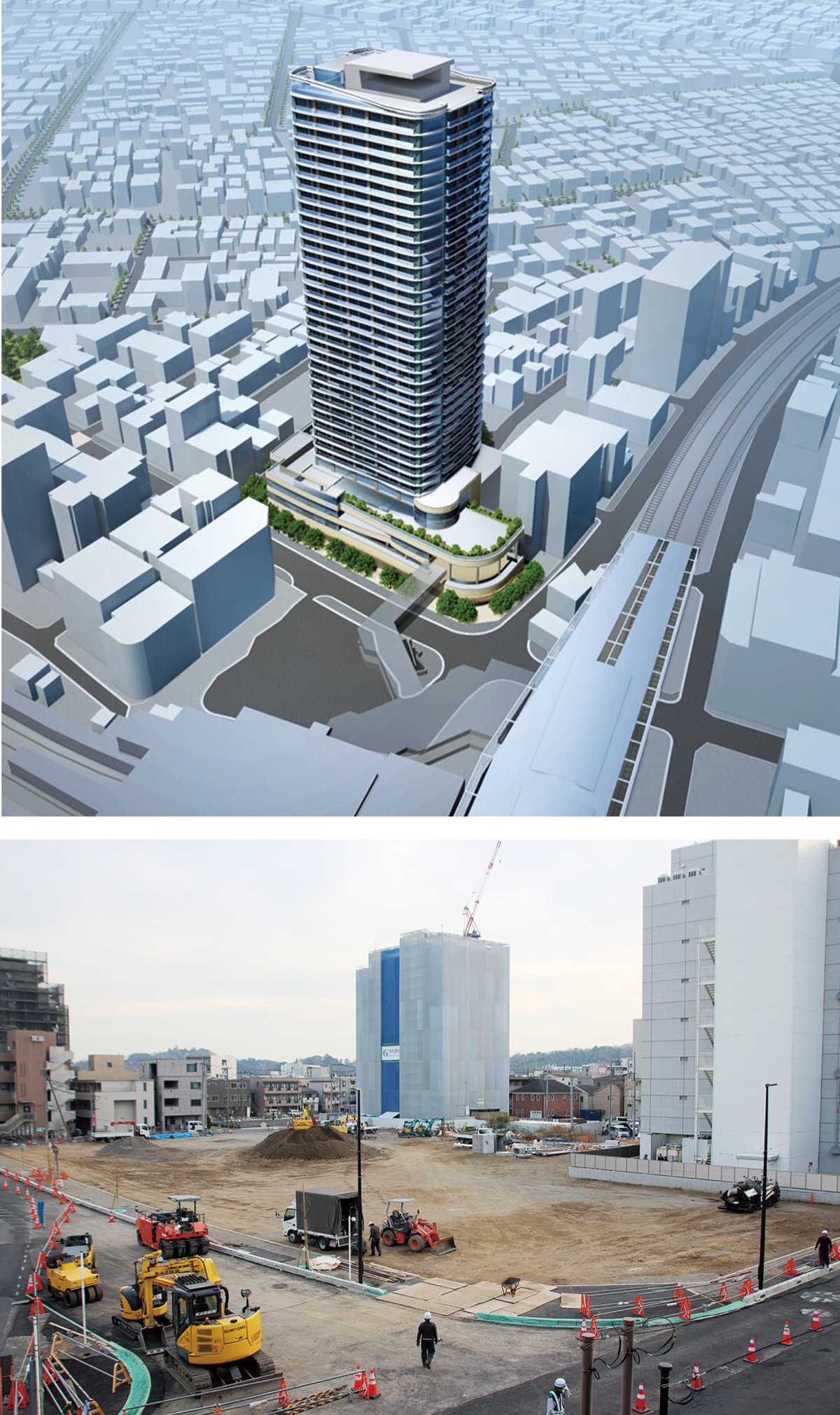 登戸駅南側に建設される建物は鉄筋コンクリート造で地上38階・地下2階、高さ約140m。22年の計画段階では35階建てとされていた。昨年11月に市が公開した環境影響評価の条例に基づく審査書や事業関係者によると、5階から38階までは約450戸の都市型住宅、1階から4階までは商業施設が入る。店舗や事業所に加え、約250台分の駐車場などが整備される予定。2階部分には登戸駅に直結する延伸約45m、幅員6mの歩行者デッキや立体広場などのオープンスペースを整備し、駅前拠点としての機能を強化する。延床面積は約6万3500平方メートル。着工は2025年4月、竣工は28年9月の予定。施工会社は未定だ。事業関係者は「次の段階である市街地再開発組合設立へ向け事業を推進し、登戸・向ヶ丘遊園駅周辺地区の玄関口にふさわしい駅前空間の形成を目指していく」としている。