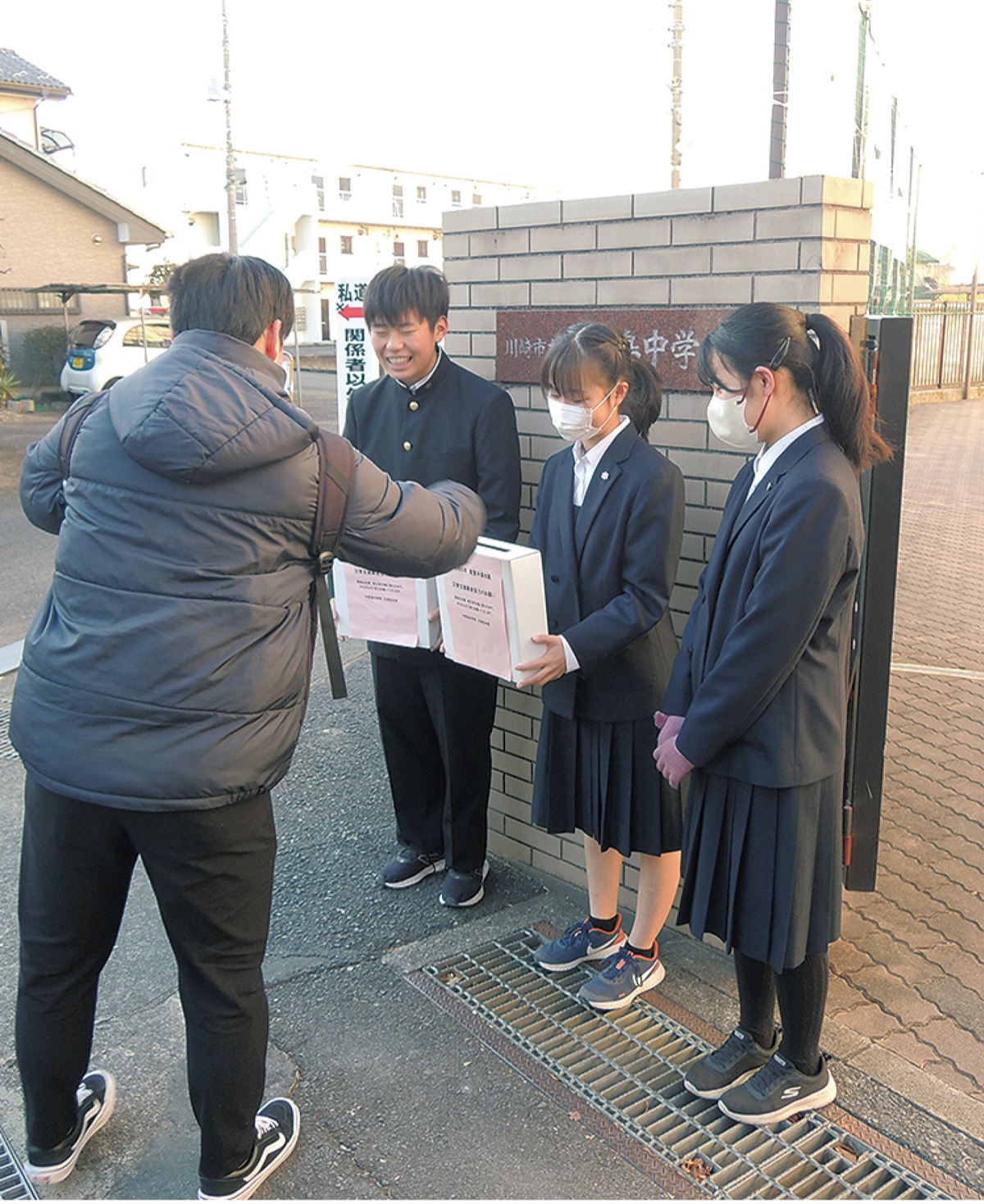 生徒会長の戸田周平さん(2年)は、「生徒だけでなく地域の方々や先生方からも笑顔で募金していただいた。今回集まった募金には、『中野島の思い』が込められていると思う」と話した。