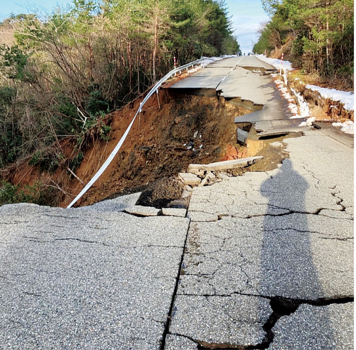 頭が濡れた状態で外に出ると、寒さが身に染みた。夫と車に乗ると、携帯電話や車内のテレビが大津波警報の発令を伝えていた。実家は2階から日本海が見える距離。電話もつながらない。「家族が避難していることをただただ、祈っていた」と新村さん。近くの小学校に避難していることが分かったのは、6時ごろ。夫と向かった。道路の亀裂や倒木。見慣れた故郷は、一変していた。