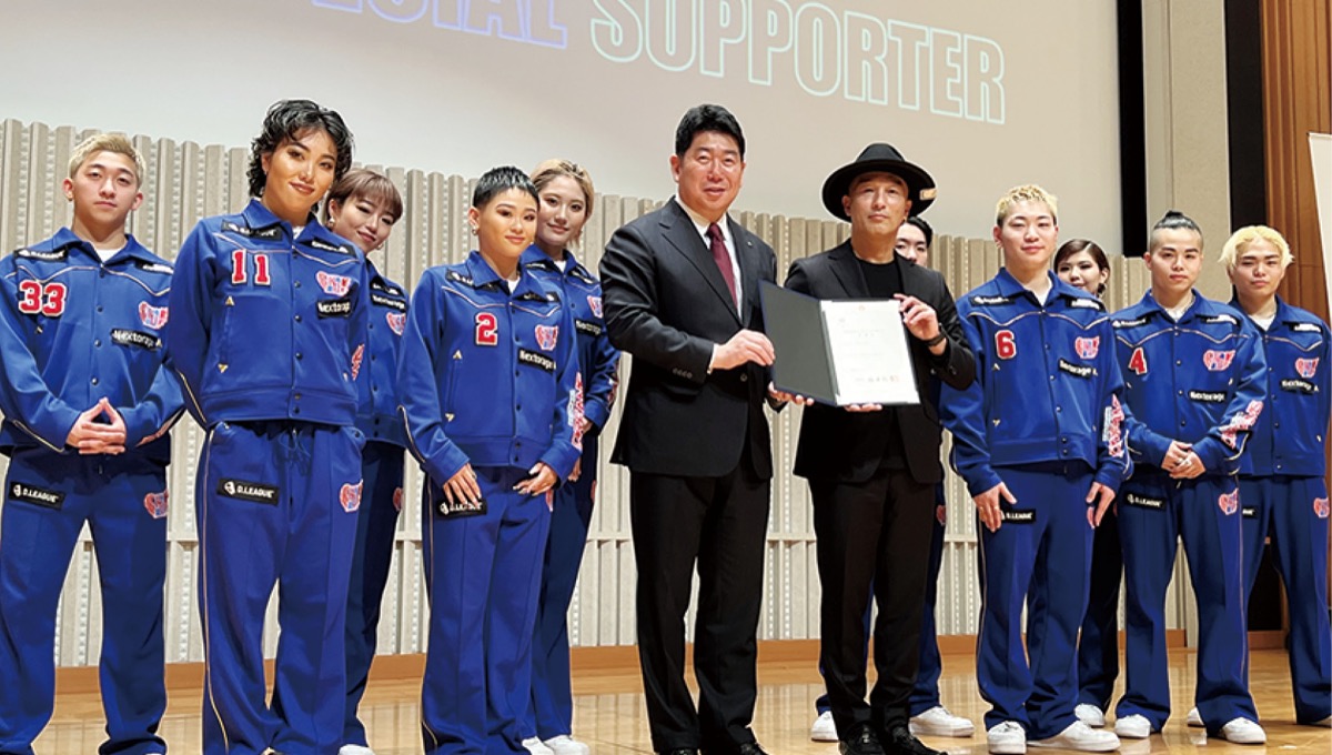また今回、100周年を盛り上げるスペシャルサポーターに、ダンスDリーグで活躍する「カドカワドリームズ」(KD)を新たに任命。総会参加者の前でパフォーマンスを披露したメンバーに、委員会会長の福田紀彦市長は「昨年度のチャンピオンシップで優勝した人気チーム。地域活動にも積極的だし、若い世代に100周年を広める上でも力強い仲間が加わった」と期待を込めた。