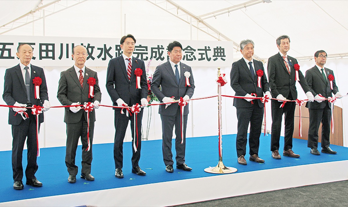 4月27日に登戸の稲田多摩川公園で開かれた市主催の完成式典には関係者約60人が出席。事業の説明やテープカット、多摩高校吹奏楽部による演奏などが行われた。あいさつに立った福田紀彦市長は「治水安全度の向上は長年の課題だった。ようやくこの日を迎えることができた」と述べ、関係者へ謝辞を贈った。