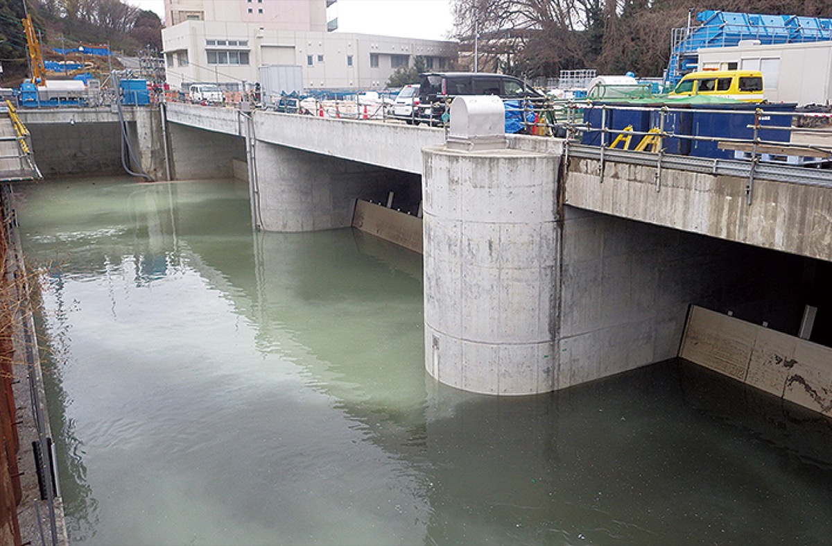 そこで市は治水対策の一環として、30年に1回程度発生するとされる時間雨量90mmの降雨に対応する放水路の整備を計画。1992年度に事業に着手して97年度に着工し、3月31日に本格運用を開始した。当初は10年程度での完成を見込んでいたが、用地取得交渉などが難航して事業が長期化したという。