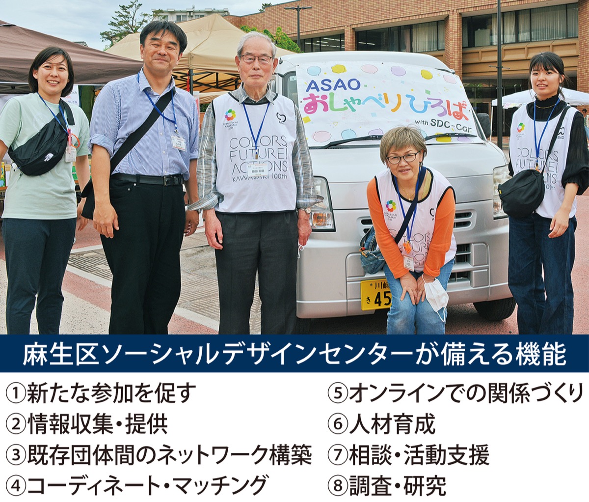 麻生区は4月29日、区域全体で連携し新たな取り組みや価値を生み出す活動を支援する「麻生区ソーシャルデザインセンター」(あさおSDC)を開設した。人材育成など8つの機能を柱に、まちの課題解決に向け尽力していく。