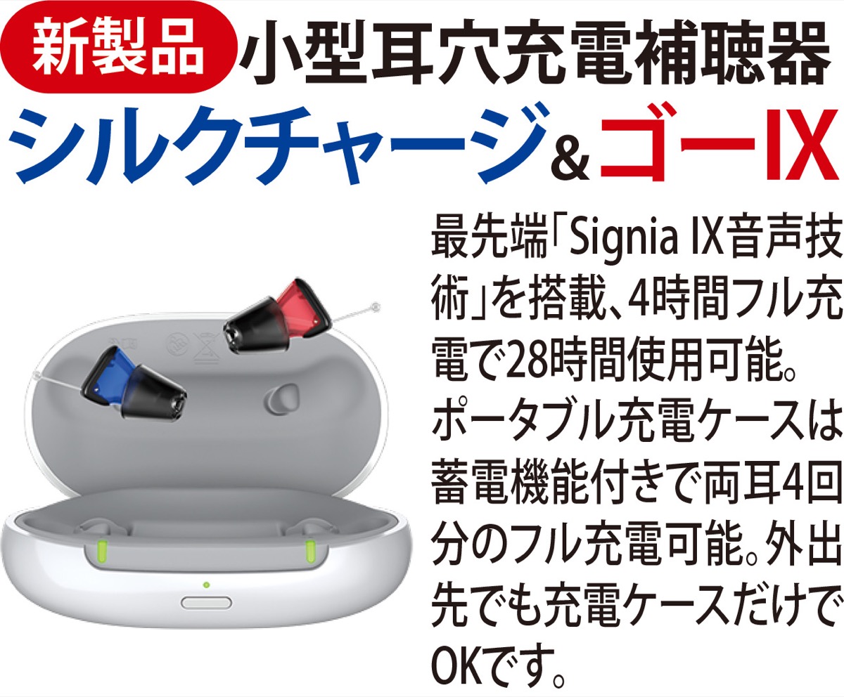 先頃、新規オープンした同店が推奨しているのが"見せない補聴器"の最新機種として話題の「シルクチャージ&ゴーⅨ」=写真左下=。一見、気付かれないサイズ感と自然な付け心地を両立した高性能タイプで、充電式なので電池交換が不要なのも人気の秘訣。認定補聴器技能者の資格を持つ店長の三浦悠水さんは「最新の高性能機種で日々のお出かけや会話が、ますます楽しんで頂けると思います。もちろんお試しやレンタルも出来ますので、ぜひ予約の上、ご来店下さい」と、利用を呼び掛けている。