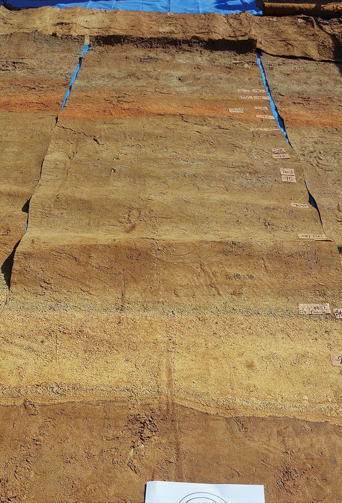 5月10日の「地質の日」を記念して川崎市教育委員会は5月19日(日)、2023年度に第6回市地域文化財として決定した「オシ沼切通し多摩ローム層模式露頭剥ぎ取り標本」の7点のうち1点を、かわさき宙と緑の科学館(多摩区枡形)2階学習室で限定公開する。観覧は無料。午後2時から4時まで。