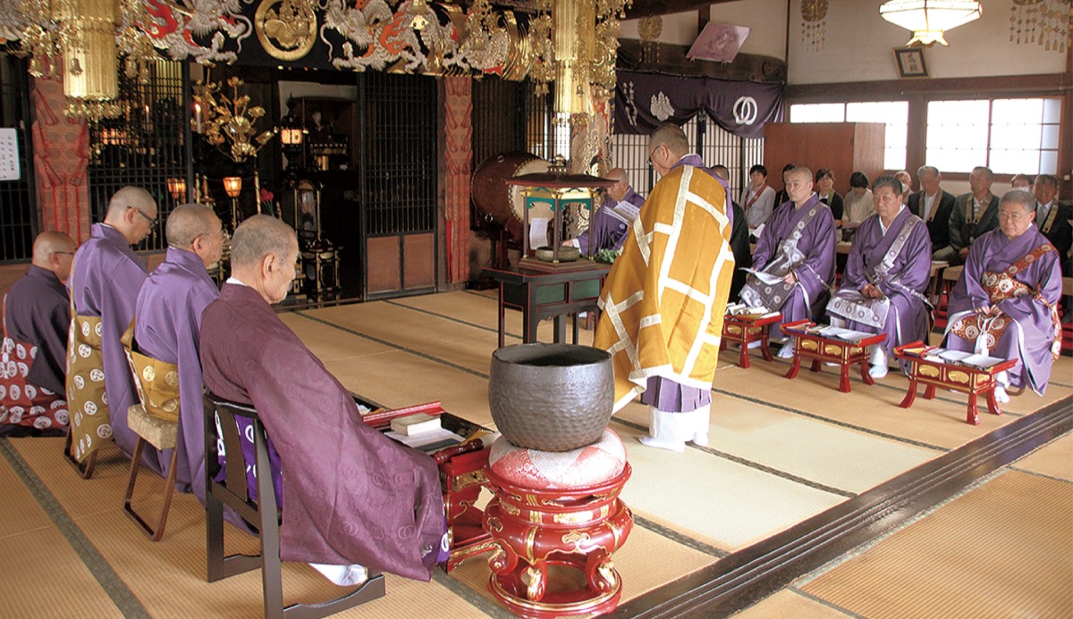 当日は本堂に11人の僧侶が集い、常照寺の川腰義一住職が釈迦の生誕を祝い読経すると向き合って着座した僧が続いた。次に仏教歌の『花まつり和讃』を檀信徒と共に奉納。加えて、太鼓や拍子木、笙の音に合わせて経が読まれる中、檀信徒が一人ずつ釈迦像に花と茶を献じた。法話や仏教讃歌を歌う時間もあった。