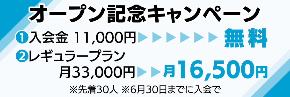 6月30日までオープン記念で入会金無料などがお得に(先着30人)。まずは無料体験でその魅力を確かめてみては。