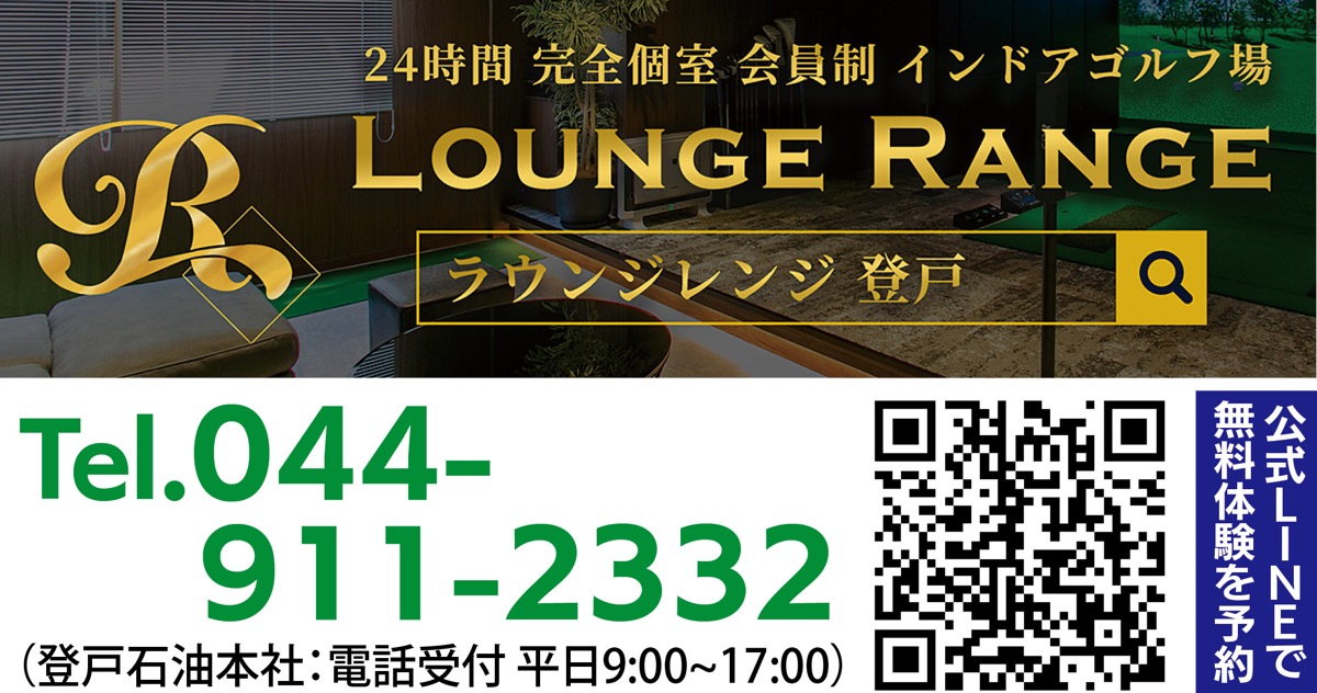 24時間営業で好きな時間に練習できる会員制インドアゴルフ場「LOUNGE RANGE登戸」が登戸石油のビル8階(トセキビル・登戸1780)にオープンした。