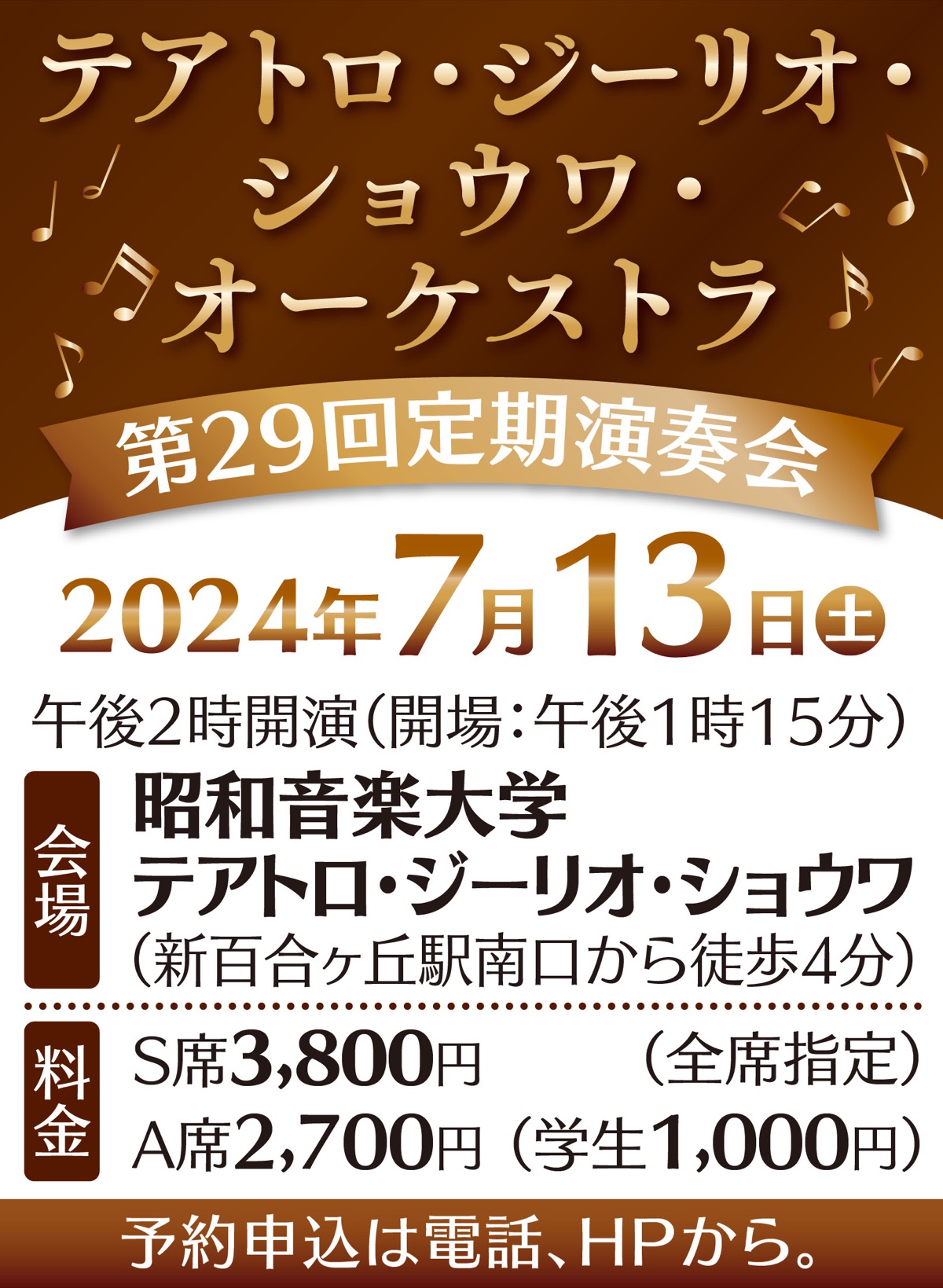 新百合ヶ丘駅至近の昭和音楽大学で7月13日(土)にテアトロ・ジーリオ・ショウワ・オーケストラの演奏会が開催される。