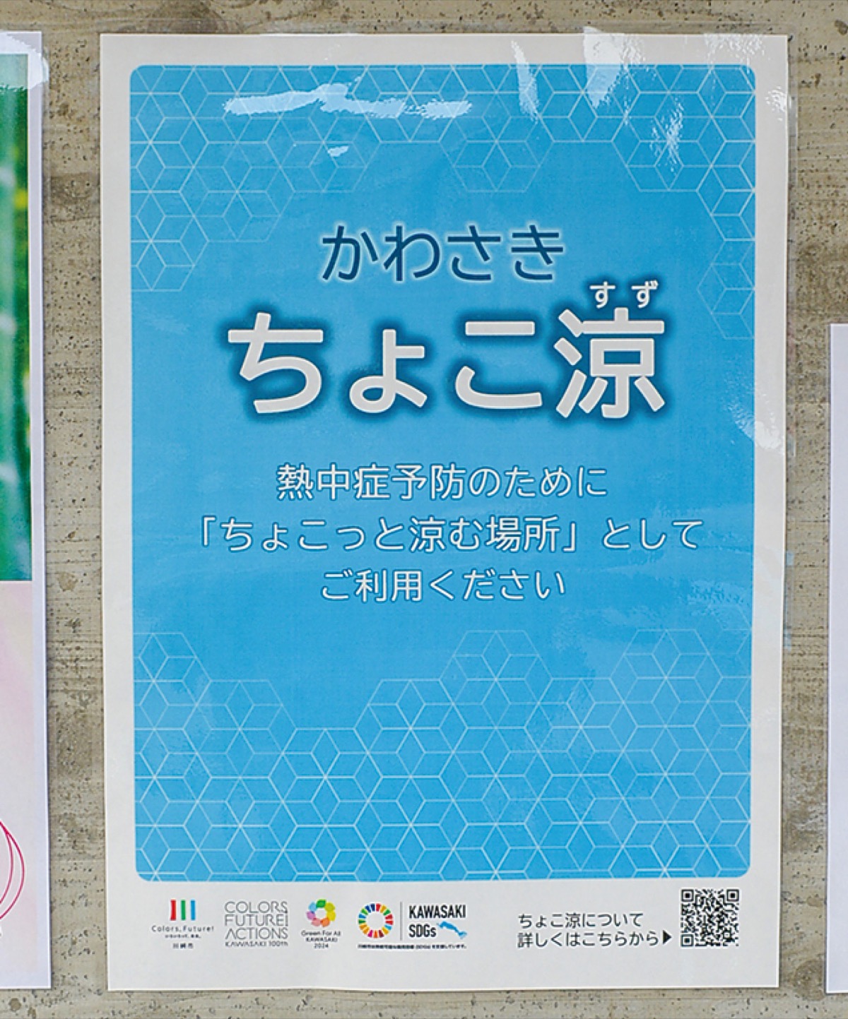 酷暑到来を前に、川崎市は外出時の熱中症予防のために区役所や図書館など194の公共施設を「一時的に暑さをしのぐ場所」として供用する「ちょこ涼(すず)」の運用を7月1日から始めた。昨年度の熱中症救急搬送者数の約3割が外出時だったことから、熱中症になる前に涼しい場所でのクールダウンを推奨するもので初の試み。9月末までの開庁時間であれば誰でも休憩利用できる。市は「ちょこ涼」に協力できる民間事業者も募集している。
