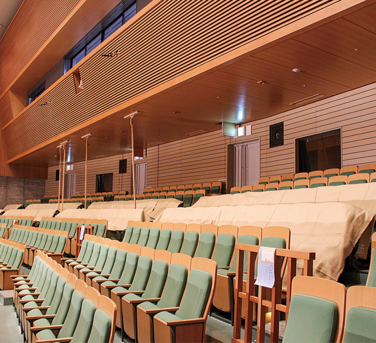 漏水の影響で6月18日から客席後方の一部などに利用制限をかけていた同館の大ホール。908席のうち、202席は使用せずに安全対策を行っていた。漏水の原因であった雨水管の改修工事は7月16日に完了。8月5日から30日までの期間、客席後方の天井補強工事と3階出入口の天井補修工事を実施している。同館閉館後の工事のため大ホールの利用は可能。工事終了後、全ての客席が利用できる。同館担当者は「ご迷惑をおかけしているが、安全に利用いただけるよう工事を進めている。引き続き多くの人に利用してもらいたい」と思いを話した。
