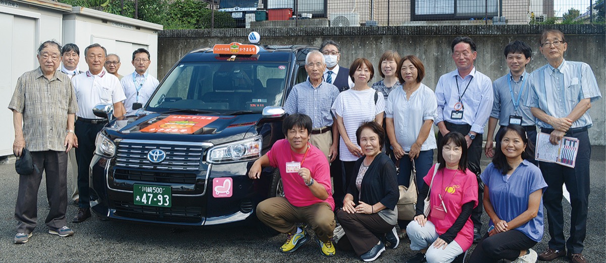麻生区片平地区で試験運行されている乗り合い型コミュニティ交通「かきまる号」の出発式が、運行初日の9月2日、片平会館で行われた。