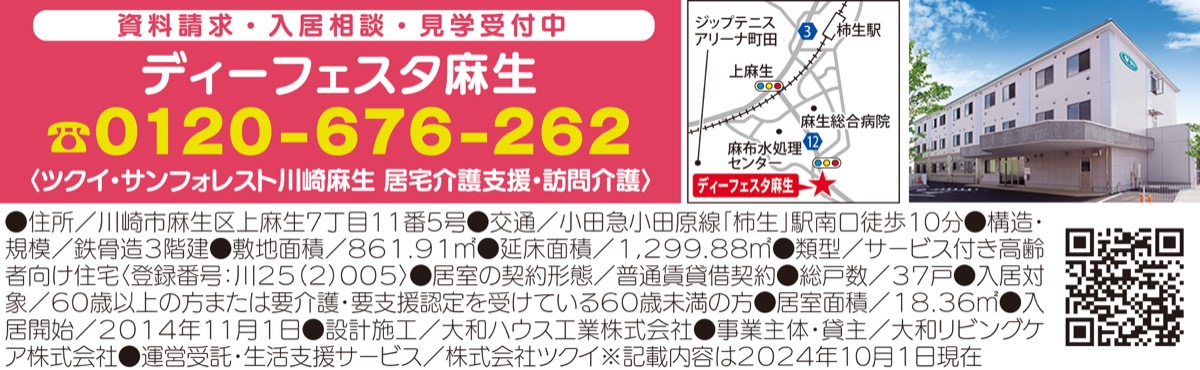 ■ディーフェスタ麻生(運営:大和リビングケア株式会社)/川崎市麻生区上麻生7の11の5/小田急小田原線「柿生」駅徒歩10分