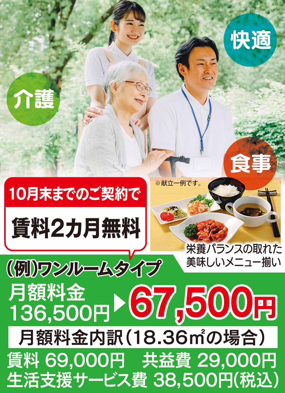 大和ハウスグループのサービス付き高齢者向け住宅「ディーフェスタ麻生」は、10月末日までの契約で賃料が最大2カ月無料になるキャンペーンを実施している。