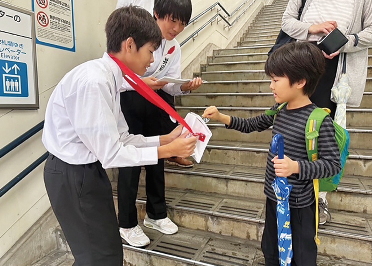 同地区社協が毎年実施しており、2年前からは地元中学生も協力。5日は枡形・南生田・生田中学の生徒24人が生田駅前で共に活動した。