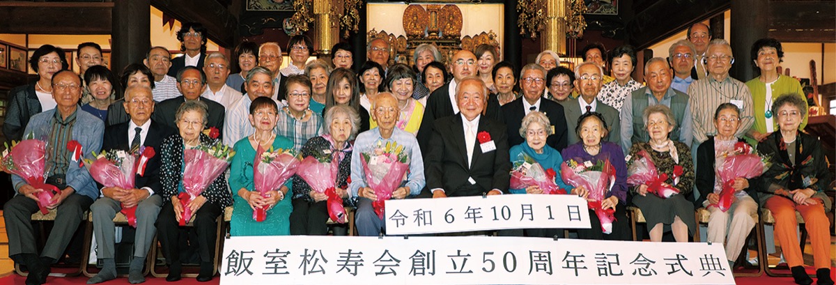 多摩区老人クラブ連合会に加盟する「飯室松寿会」(井上文雄会長)の創立50周年を祝して、記念式典が10月1日に多摩区東生田にある安立寺で行われた。
